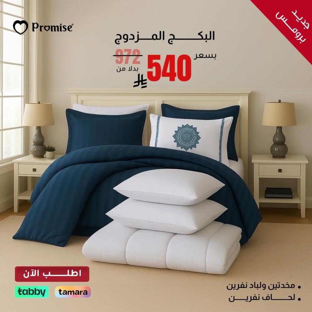 دلّل نفسك بتجربة نوم فاخرة كل ليلة مع عرض برومس المزدوج، المصمم ليجمع بين الأناقة العملية والراحة الفندقية. مفرش كينج صمم بخامات مختارة بعناية، تنسيقات متناغمة، وتفاصيل تضمن لك بيئة نوم مثالية تغنيك عن التفكير في أي إضافات. هذا العرض المتكامل يمنحك إحساسًا بالترف اليومي، ويحول سريرك إلى مساحة من الدفء والسكينة.