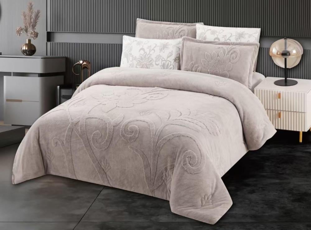 أضف لمسة من الفخامة والدفء الي غرفة النوم مع لحاف زهرة الشتاء من بلو جرين Blue Green Home الفاخر، وارتقِ بتجربة نوم مع لحاف كينج مخمل 6ق المصمم بأناقة فائقة وخامة ناعمة تمنحك إحساسًا لا يُضاهى بالراحة والجمال. مزيج من الفخامة والجودة يجعله إضافة مثالية لغرفة نومك.