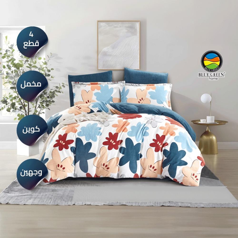 - 4 قطع (لحاف، 2 وسادة، غطاء سرير)