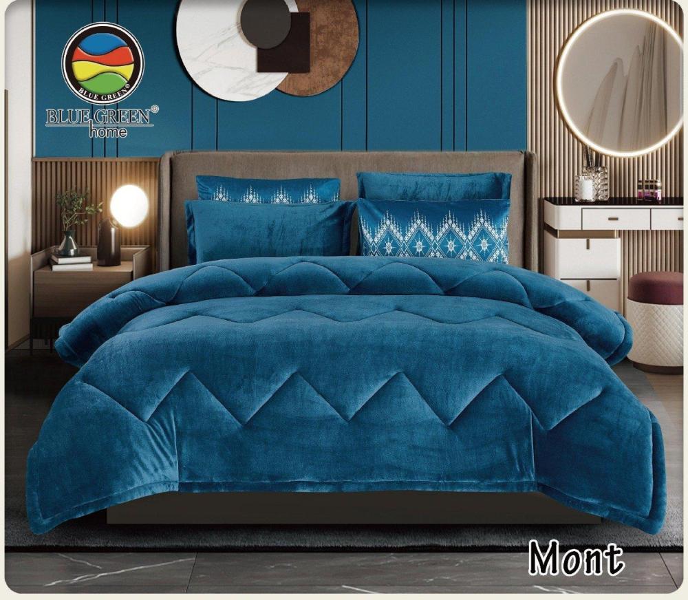 أضف لمسة من الراحة والفخامة إلى غرفة نومك مع لحاف كينج مونت  يتميز هذا اللحاف بتصميم سادة أنيق وخامات عالية الجودة، مما يوفر لك نومًا هادئًا ودفء مثالي طوال الليل. مع 6 قطع متكاملة، ستتمكن من تنسيق غرفة نومك بالكامل بطريقة عصرية ومريحة.