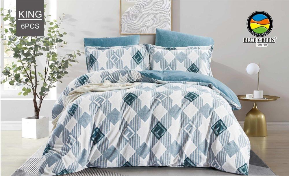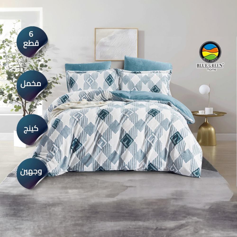 ارتقِ بتجربة النوم واستمتع بالراحة والفخامة مع لحاف كينج المخمل وجهين المشجر ذو التصميم العصري.