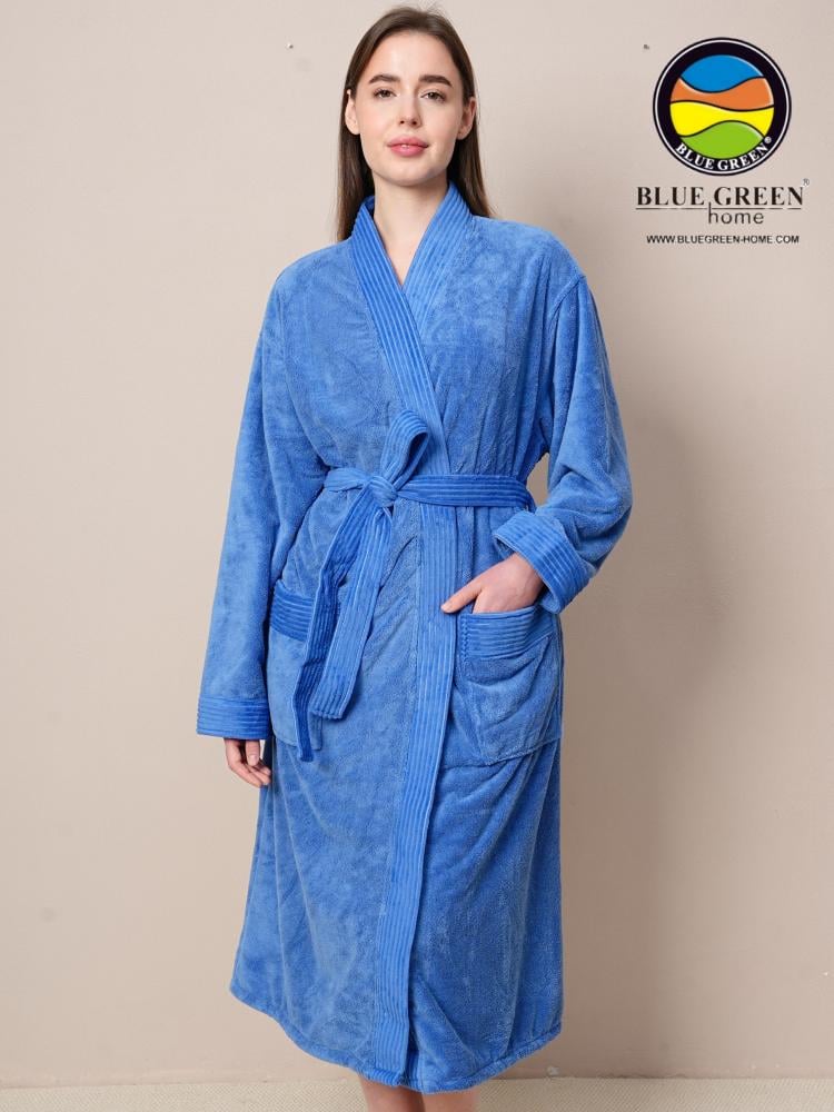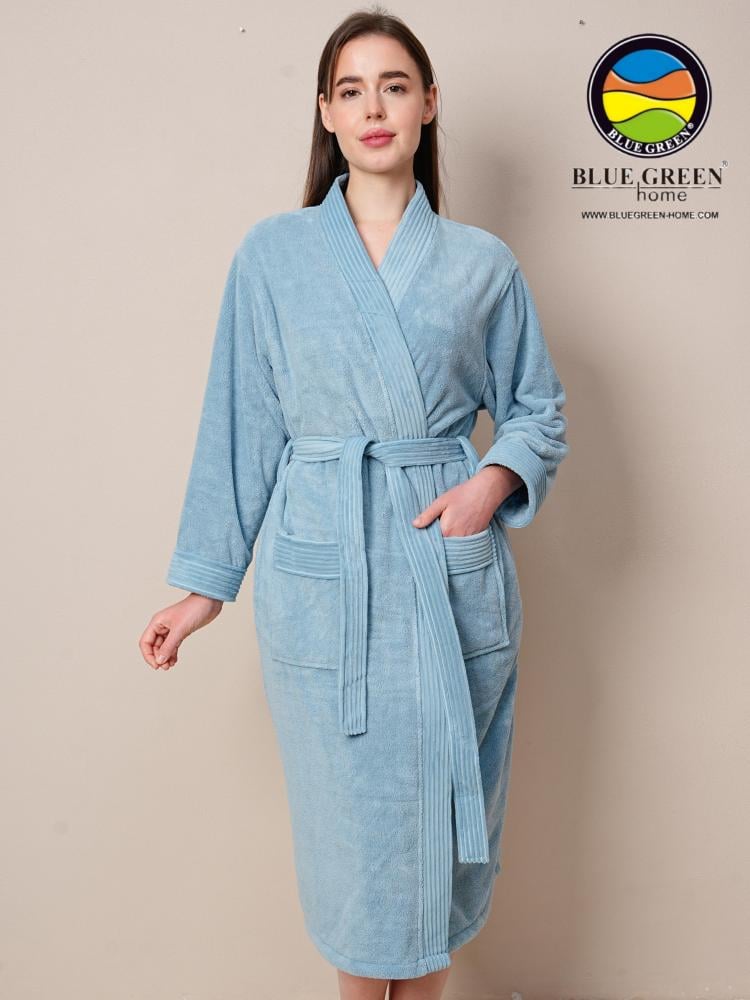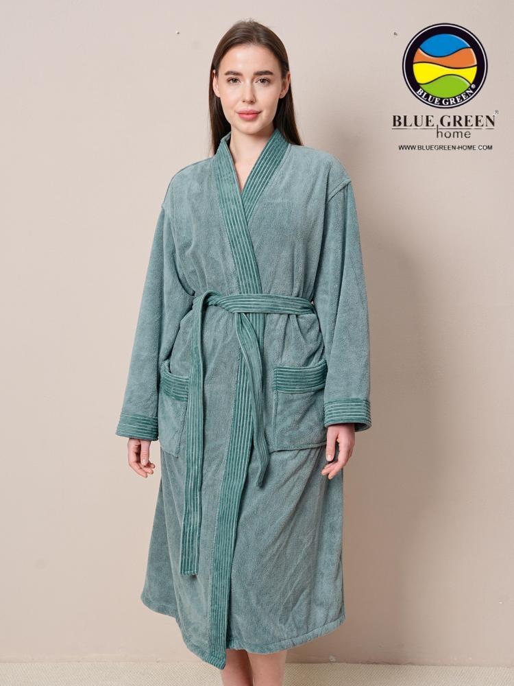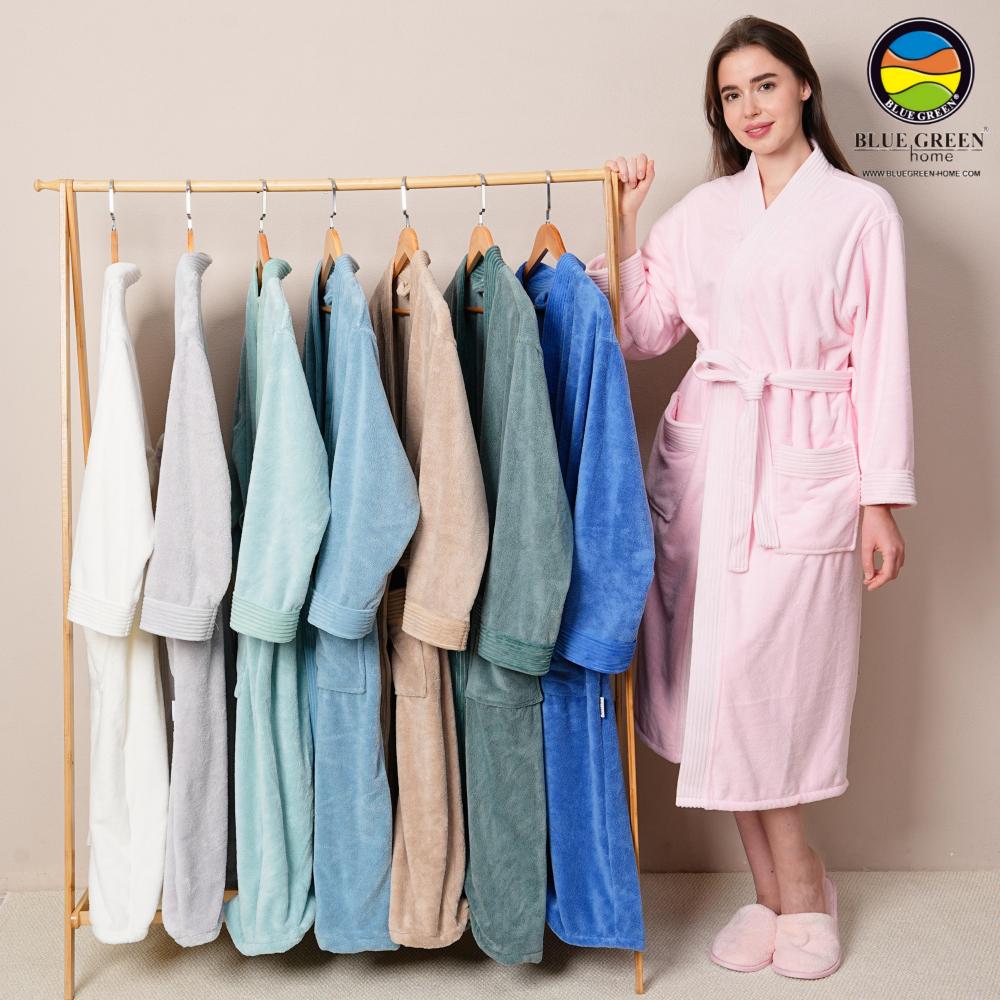 دلّلي نفسك براحة مترفة مع روب كارينا من Blue Green Home، المصنوع من خامة مخملية فاخرة تمنحك إحساسًا ناعمًا ودافئًا لا يُضاهى. يجمع هذا الروب بين التصميم العصري واللمسة الكلاسيكية ليكون رفيقك المثالي بعد الاستحمام أو أثناء الاسترخاء في المنزل.