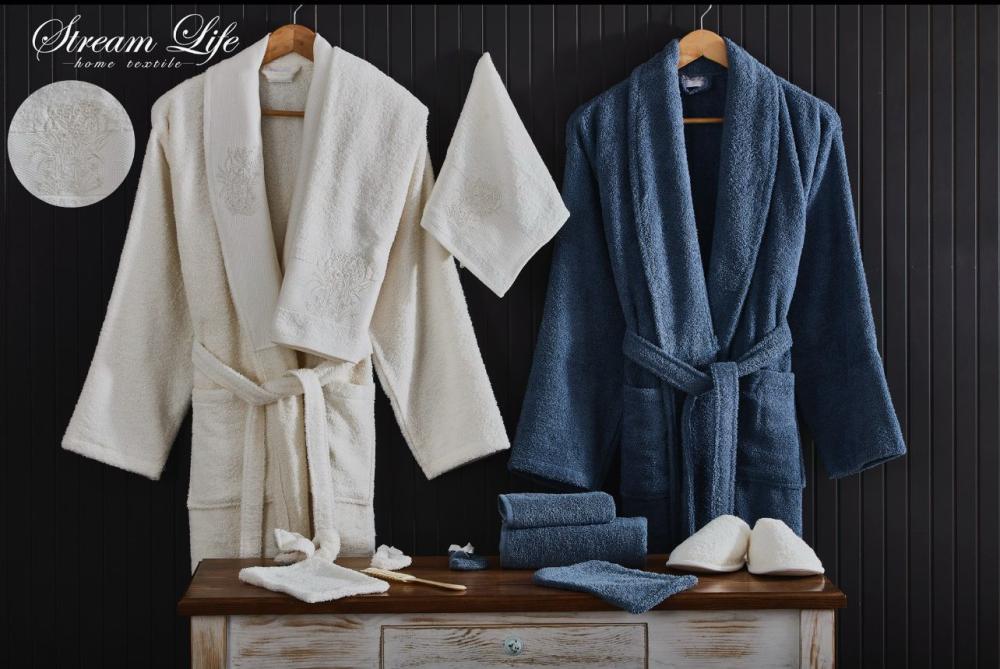 عيشي تجربة من الرفاهية الخالصة مع طقم روب تاتش لمميز من Blue Green. طقم صُمم بذوق رفيع ليجمع بين النعومة الفائقة واللمسة الجمالية الراقية، أرواب عرايسي صناعة تركي فاخر، ليمنحكِ راحة لا تُضاهى وتجفيفًا سريعًا بعد كل استحمام.