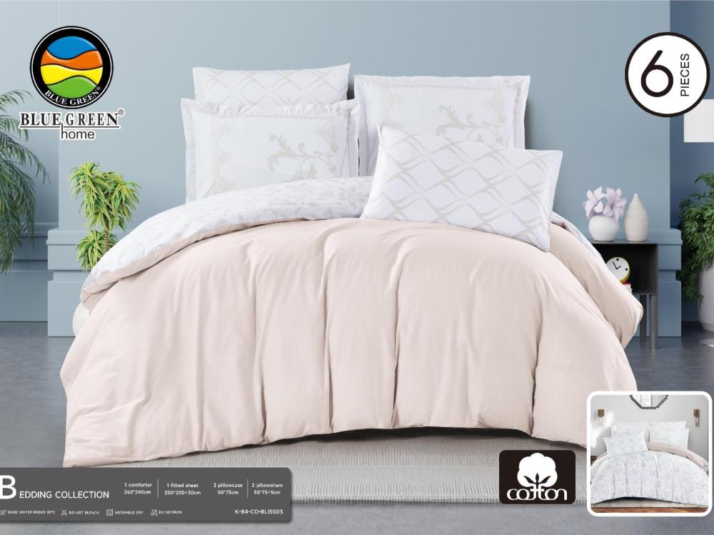 لحاف كينج BLISS قطن بلوجرين سادة وجهين ألوان متعددة-مزدوج-6قطع