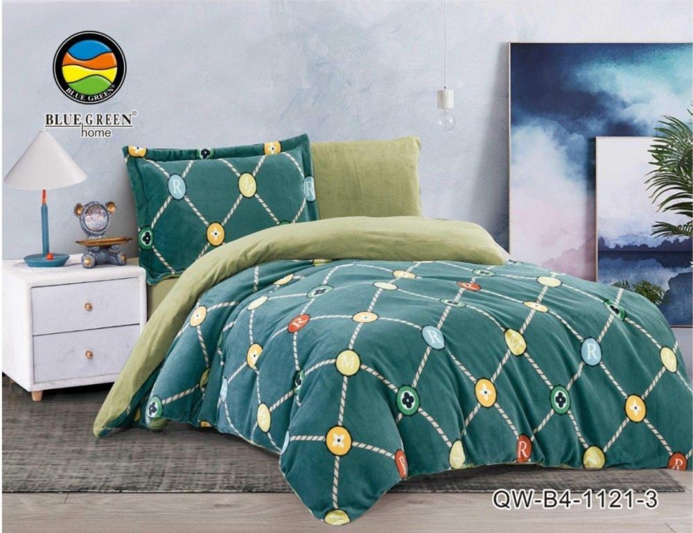 طقم لحاف كوين بلوجرين مخمل مشجر /والوجه الداخلي مخمل ساده-مفرد ونص -4 قطع